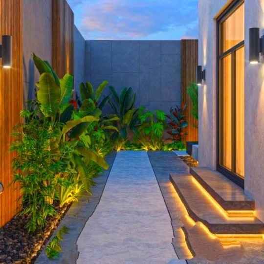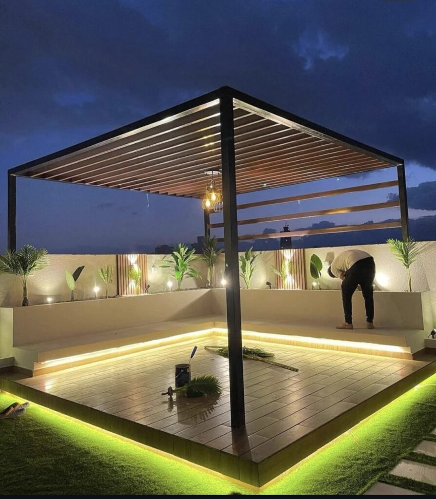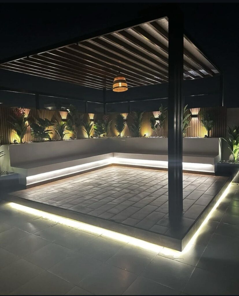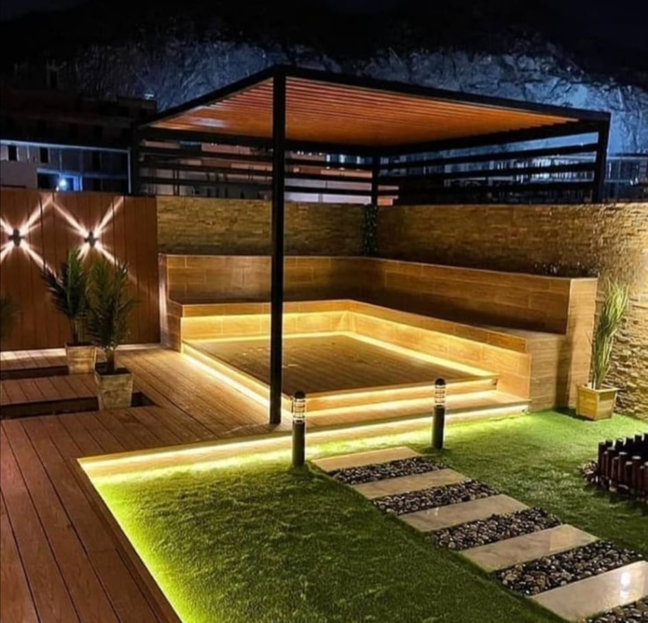- حيث اننا نجد ان نوع الاضاءة ودرجتها تمثل فارق كبير في مساحه الحديقه الخارجيه وايضا تقوم باعطاء لمسه من الرقي والجمال للحديقه اذا تم توظيفها بشكل صحيح.